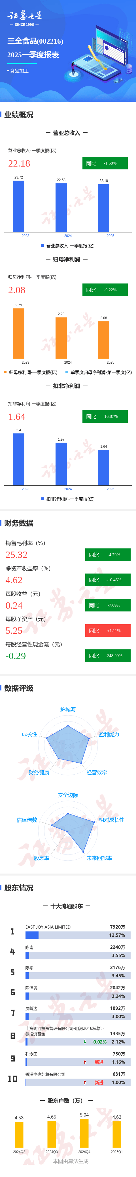 图解三全食品一季报:第一季度单季净利润同比减9.22%_归母_概要_主营