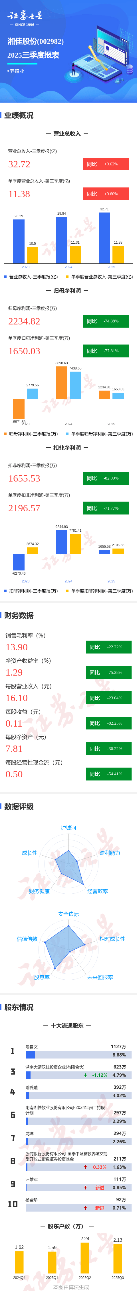 图解湘佳股份三季报:第三季度单季净利润同比下降77.82%_公司_主营_收入