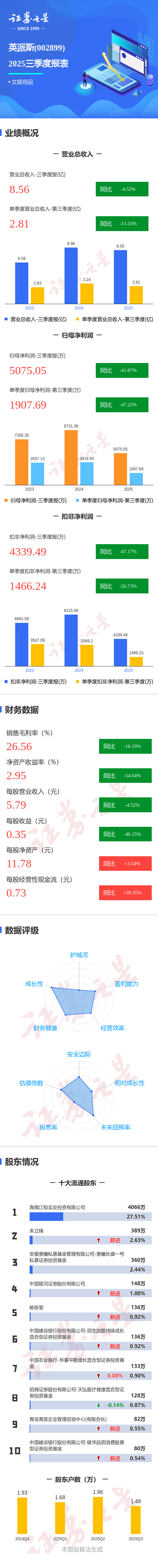 图解英派斯三季报:第三季度单季净利润同比下降47.23%_公司_主营_收入