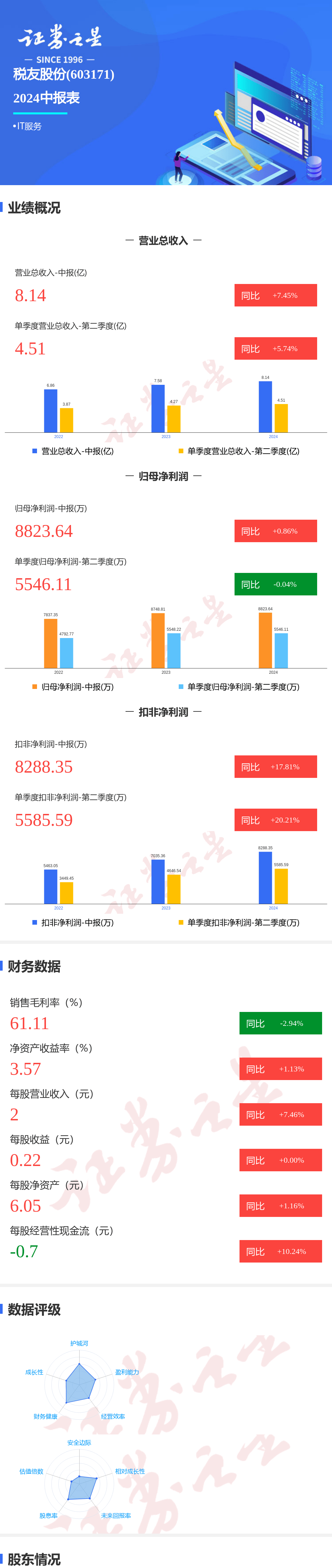 图解税友股份中报:第二季度单季净利润同比减0.04%_数据_整理_主营