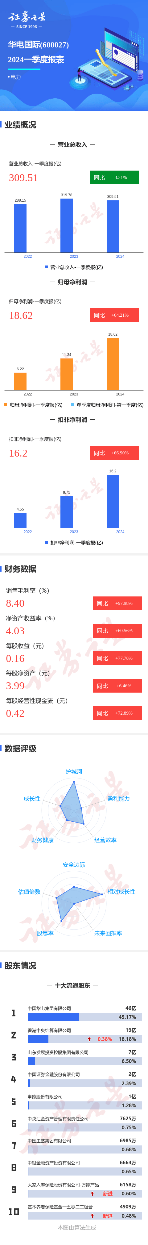 图解华电国际一季报:第一季度单季净利润同比增64.21%_数据_整理_投资