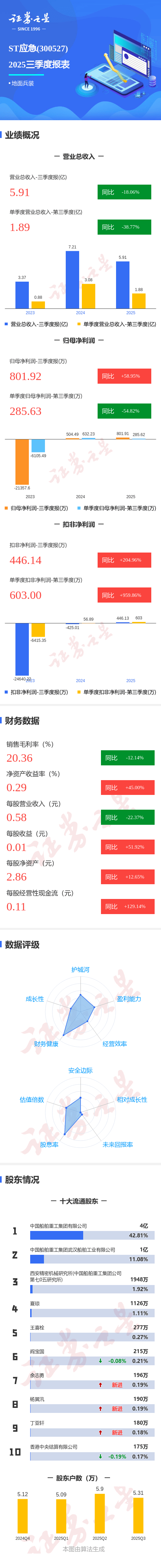 图解ST应急三季报:第三季度单季净利润同比下降54.82%_公司_主营_收入