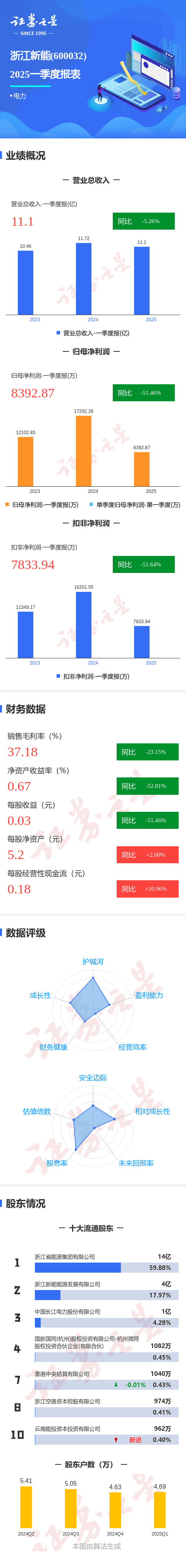图解浙江新能一季报:第一季度单季净利润同比减51.46%_归母_概要_主营