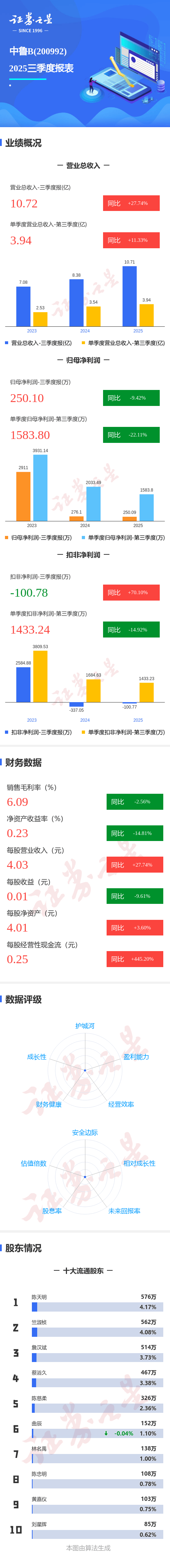 图解中鲁B三季报:第三季度单季净利润同比下降22.11%_公司_主营_收入