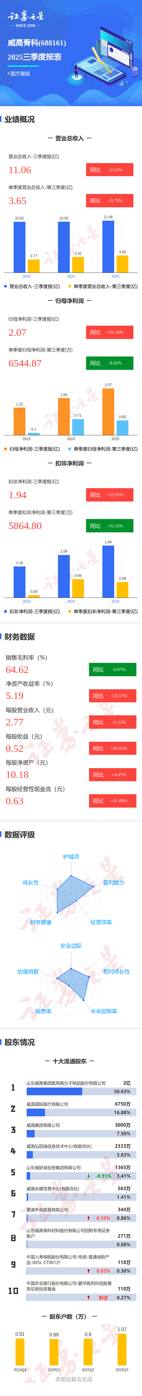 图解威高骨科三季报:第三季度单季净利润同比下降8.03%_公司_主营_收入