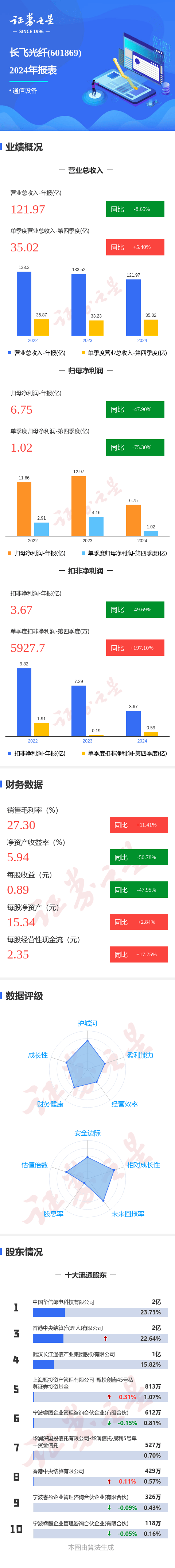 图解长飞光纤年报:第四季度单季净利润同比减75.30%_主营_公司_收入