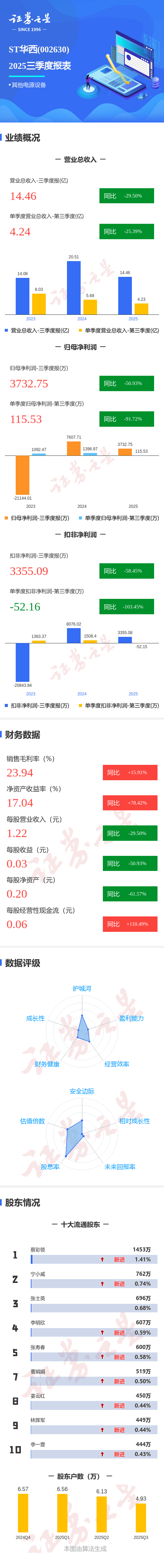 图解ST华西三季报:第三季度单季净利润同比下降91.73%_主营_公司_收入
