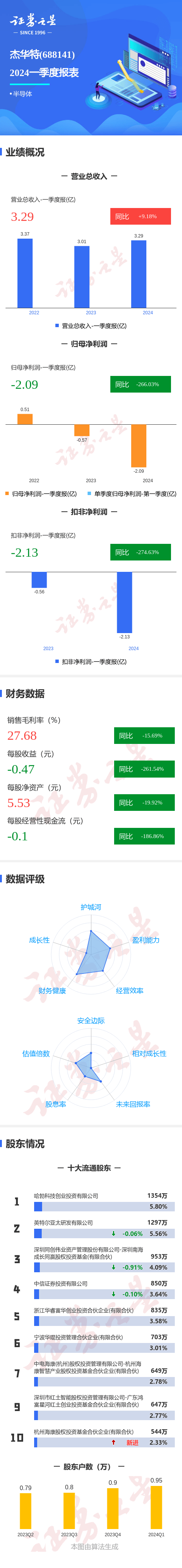 图解杰华特一季报:第一季度单季净利润同比减266.03%_数据_整理_投资