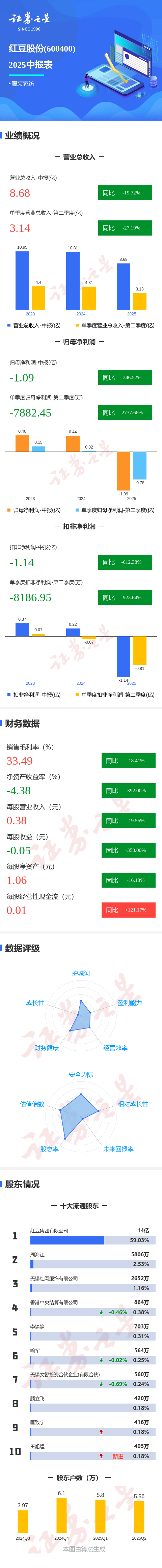 图解红豆股份中报:第二季度单季净利润同比下降2737.68%_公司_主营_收入