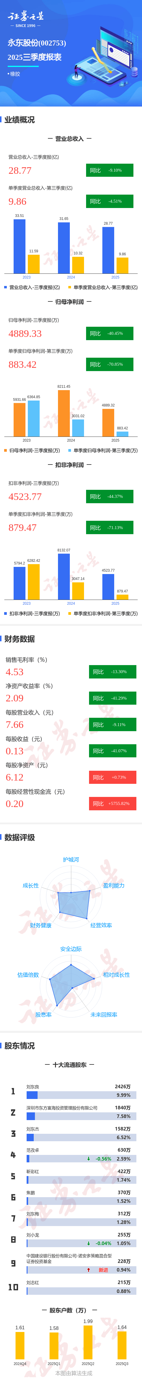 图解永东股份三季报:第三季度单季净利润同比下降70.85%_主营_公司_收入