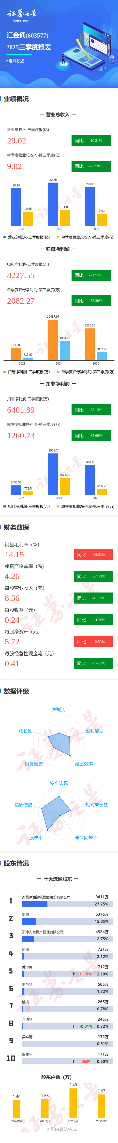 图解汇金通三季报:第三季度单季净利润同比下降58.31%_公司_主营_收入