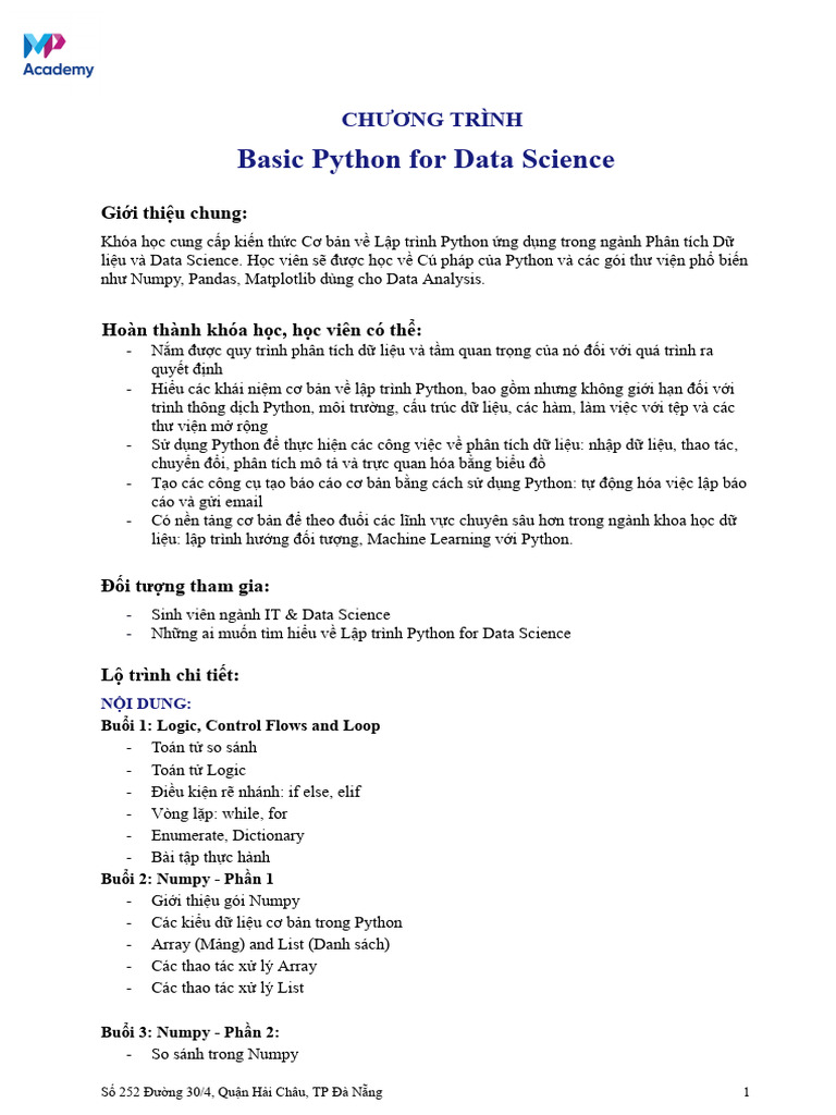 MP Academy Basic Python For Data Science Giới Thiệu Khóa Học | PDF