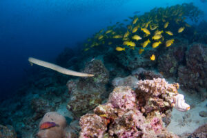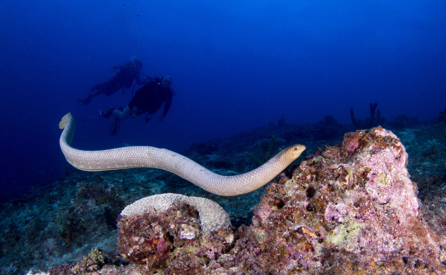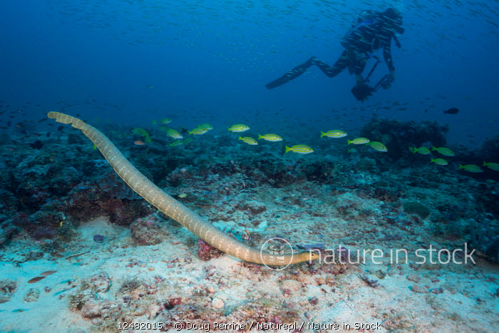 Large olive sea snake (Aipysurus laevis) over the Great Barrier Reef ...