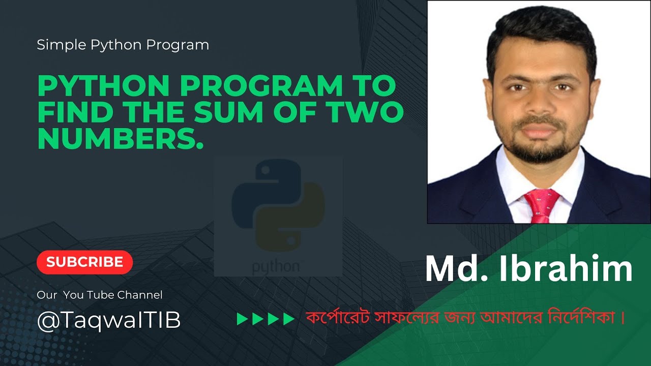 দুইটি সংখ্যার যোগফল নির্ণয়ের পাইথন প্রোগ্রাম || Python program to find ...