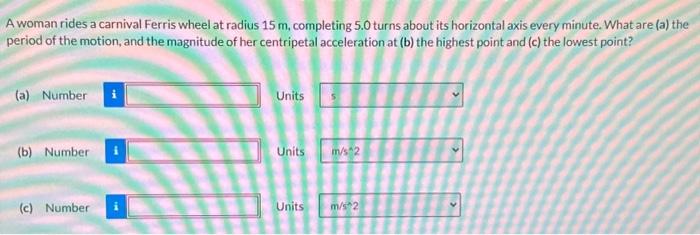Solved A woman rides a carnival Ferris wheel at radius 15 m, | Chegg.com