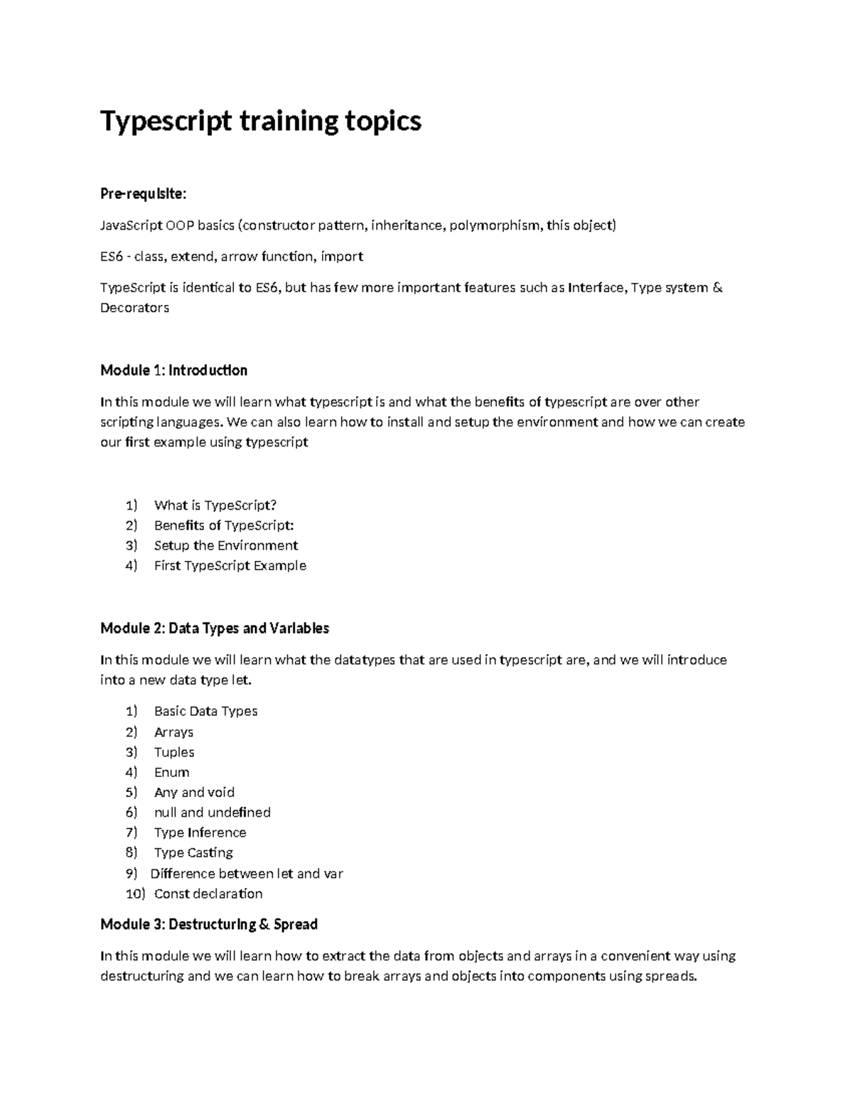 Typescript Training Topics: OOP Basics & Advanced Features (Module 1-6 ...