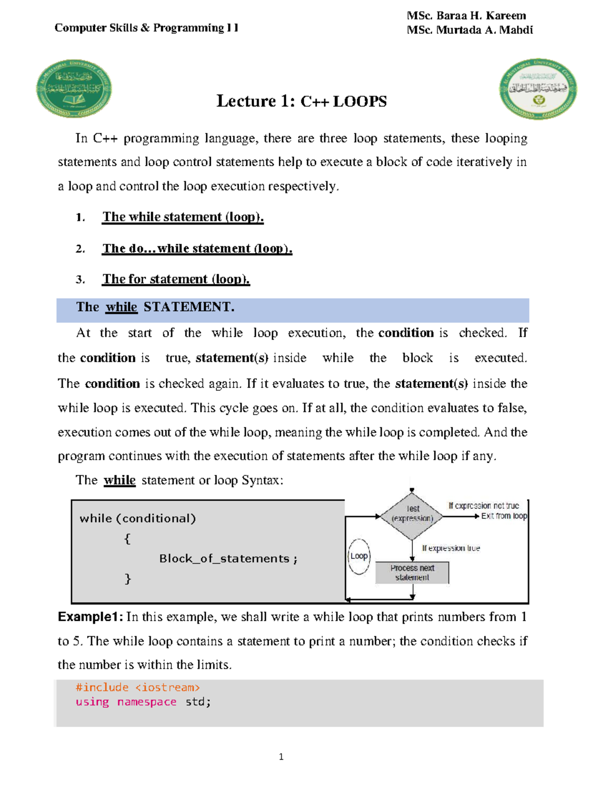 MSc. Computer Skills Programming I Lecture 1: Loops Overview - Studocu