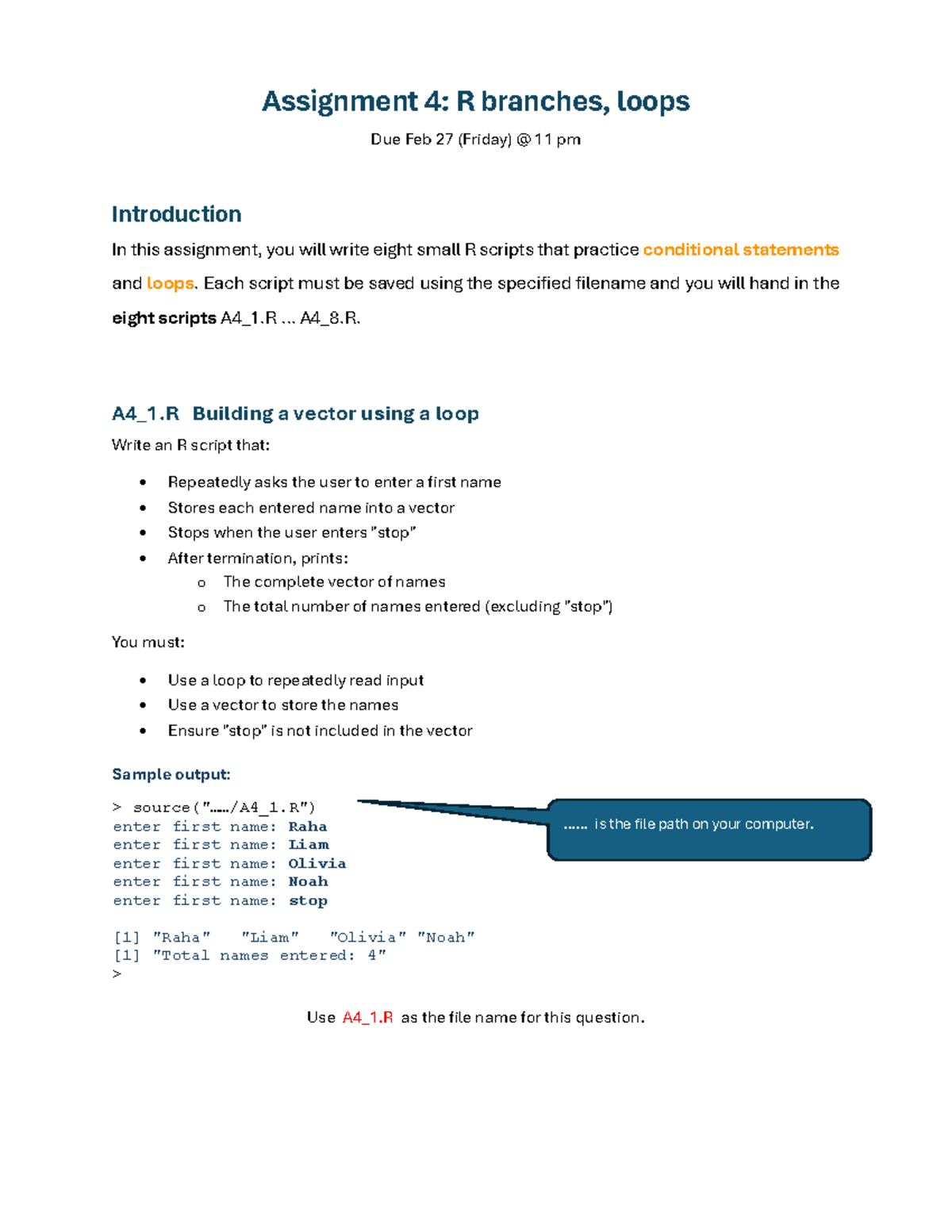 Assignment 4 (H): R Scripts for Branches and Loops - Studocu