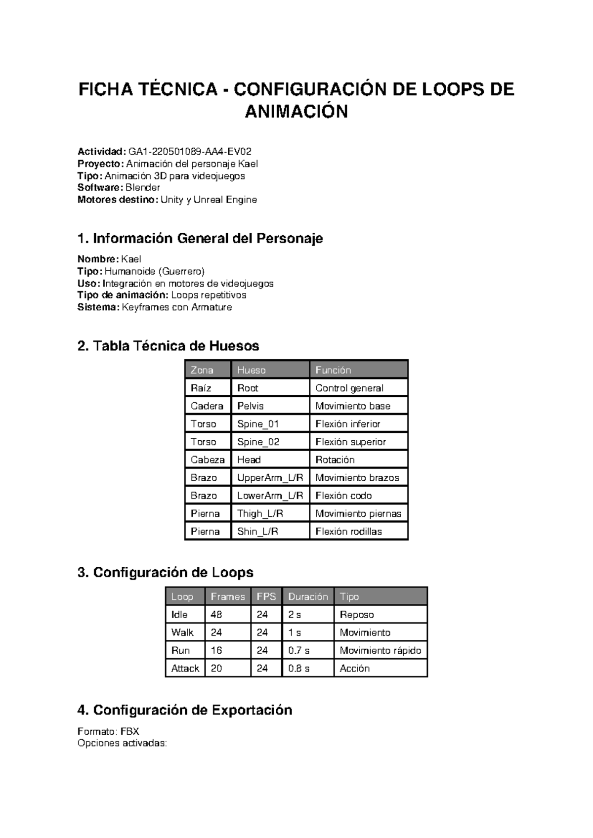 Ficha Técnica: Configuración de Loops de Animación 3D - Kael - Studocu