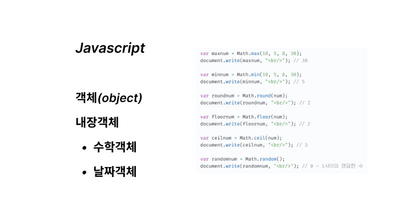 Javascript : 객체(object), 내장객체 - 수학객체, 날짜객체