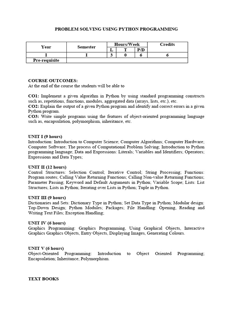 GE3151 Problem Solving and Python Programming syllabus - GE3151 PROBLEM ...