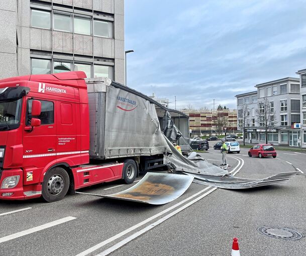 Zylinderbleche landen auf der Straße: B27 drei Stunden gesperrt