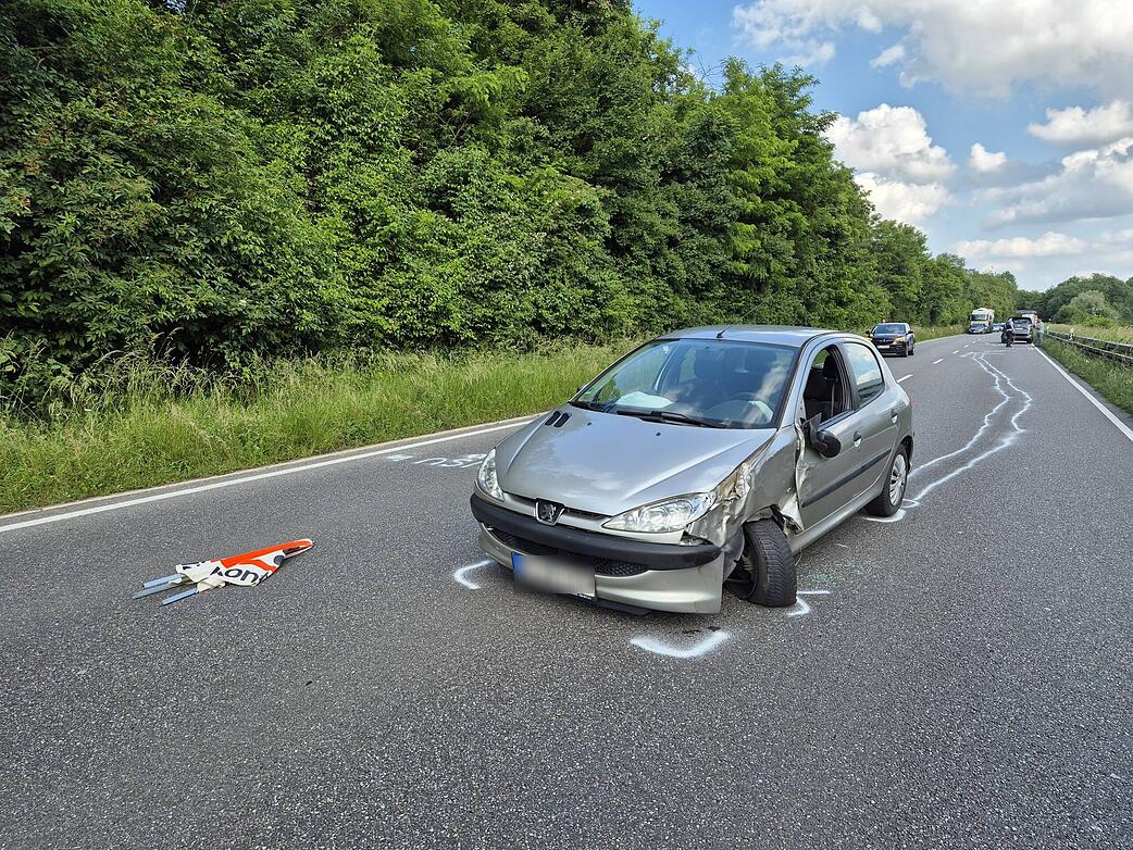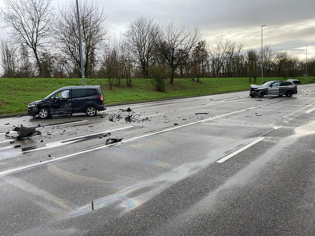 Bei einem Unfall auf der B27 bei Heilbronn und Flein kollidierten zwei ...