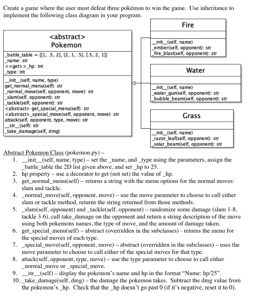 Solved how would i do i do classes pokemon, water, fire, and | Chegg.com