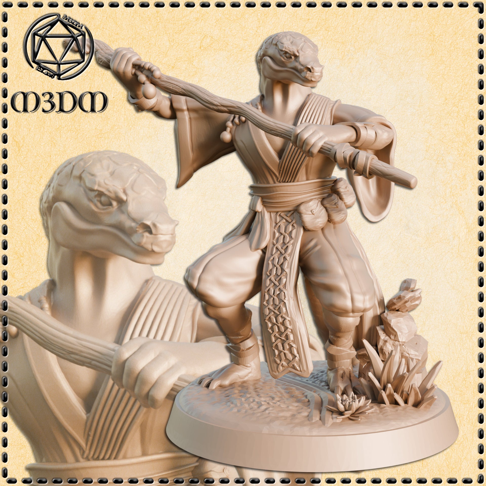 Lizardfolk Monk Action D&D Miniature by Mia Kay M3DM – MitzNSimz