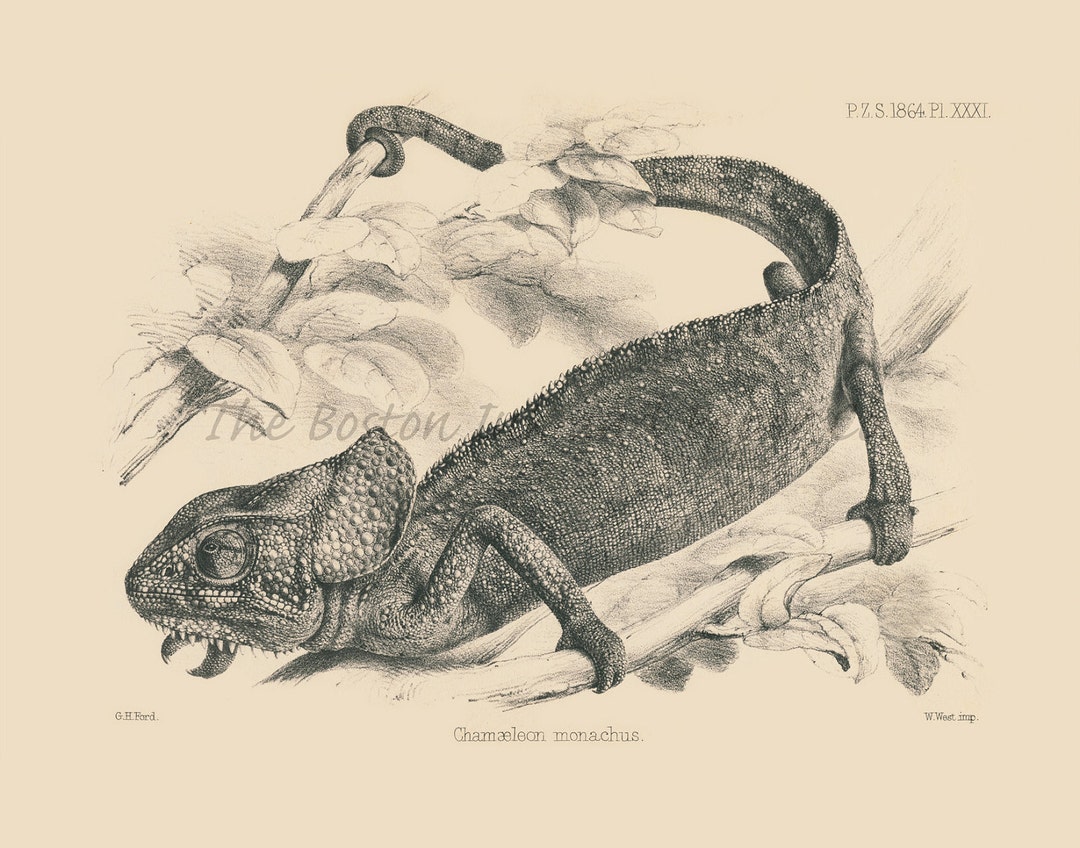 Monk Chameleon 1864 Reptile Lizard Vintage Home Office Wall | Etsy