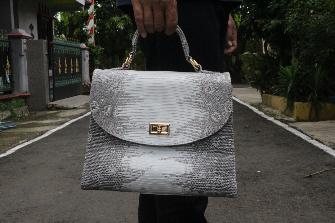 Gray Genuine Lizard Top Handle Bag, Real Lizard Skin, Genuine Lizard ...