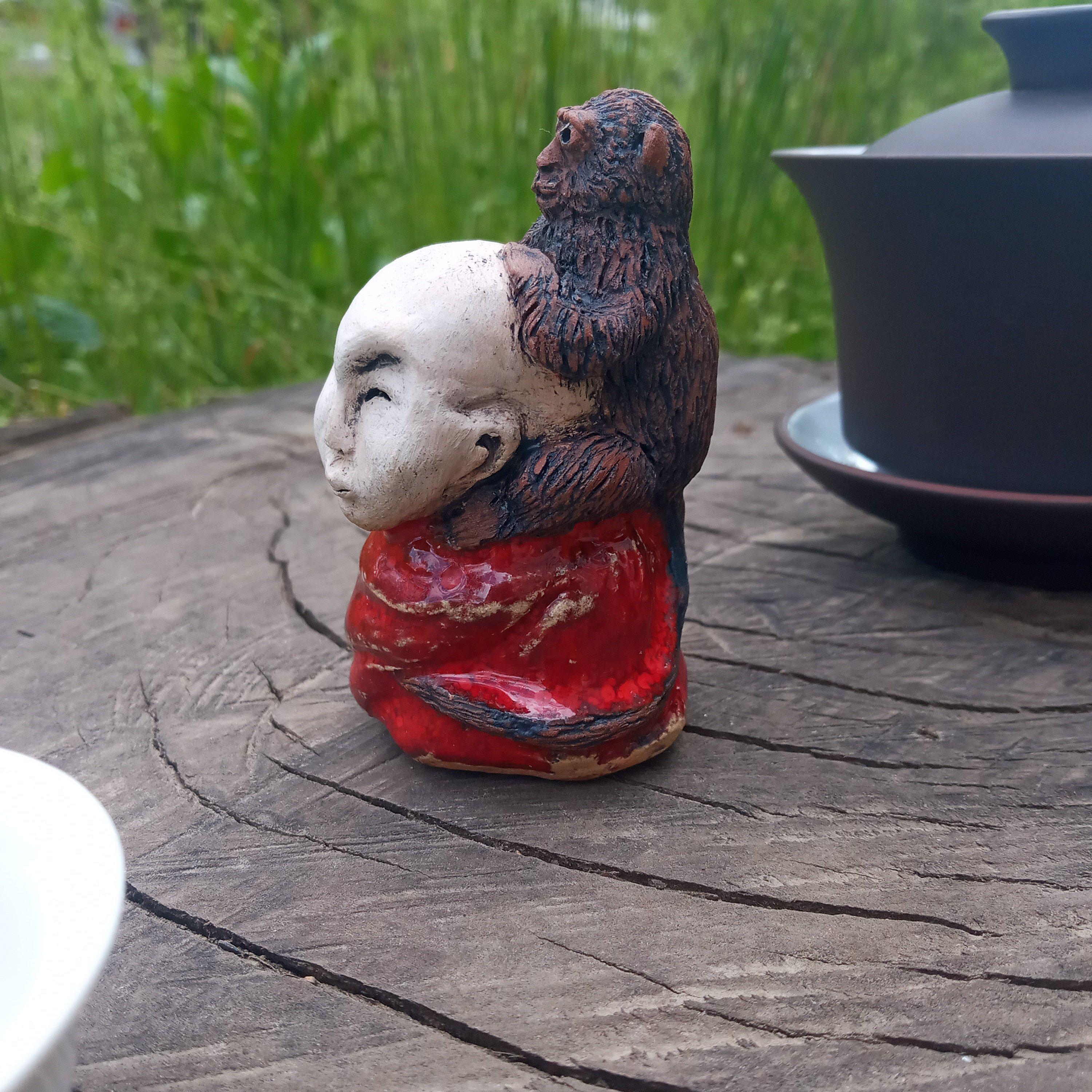 Handmade Ceramic Monk Sculpture With Monkey Tea Pet - Etsy
