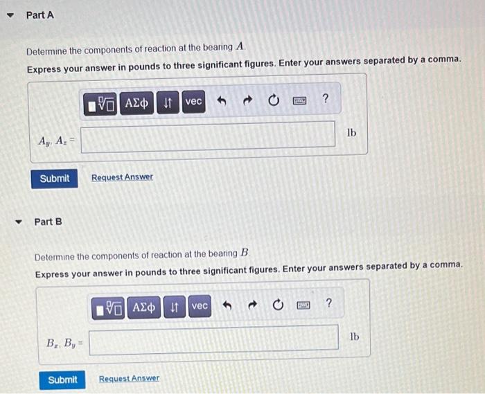 Solved Determine the components of reaction at the bearing | Chegg.com