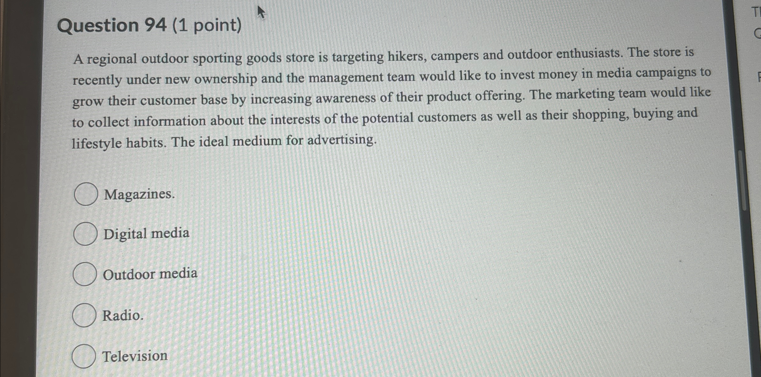 Solved Question 94 (1 point)A regional outdoor sporting | Chegg.com