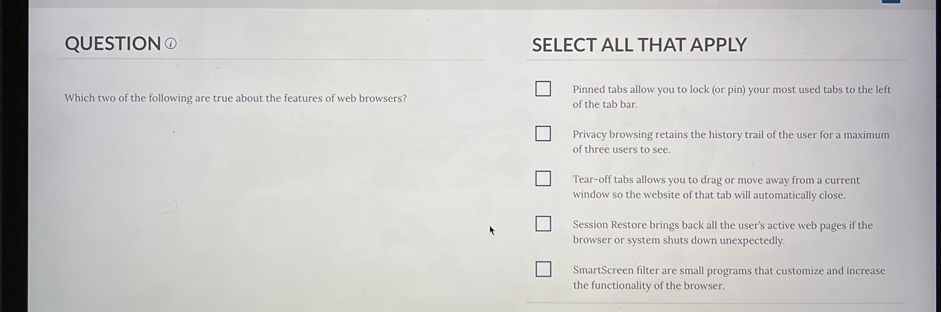 Solved QUESTIONWhich two of the following are true about the | Chegg.com
