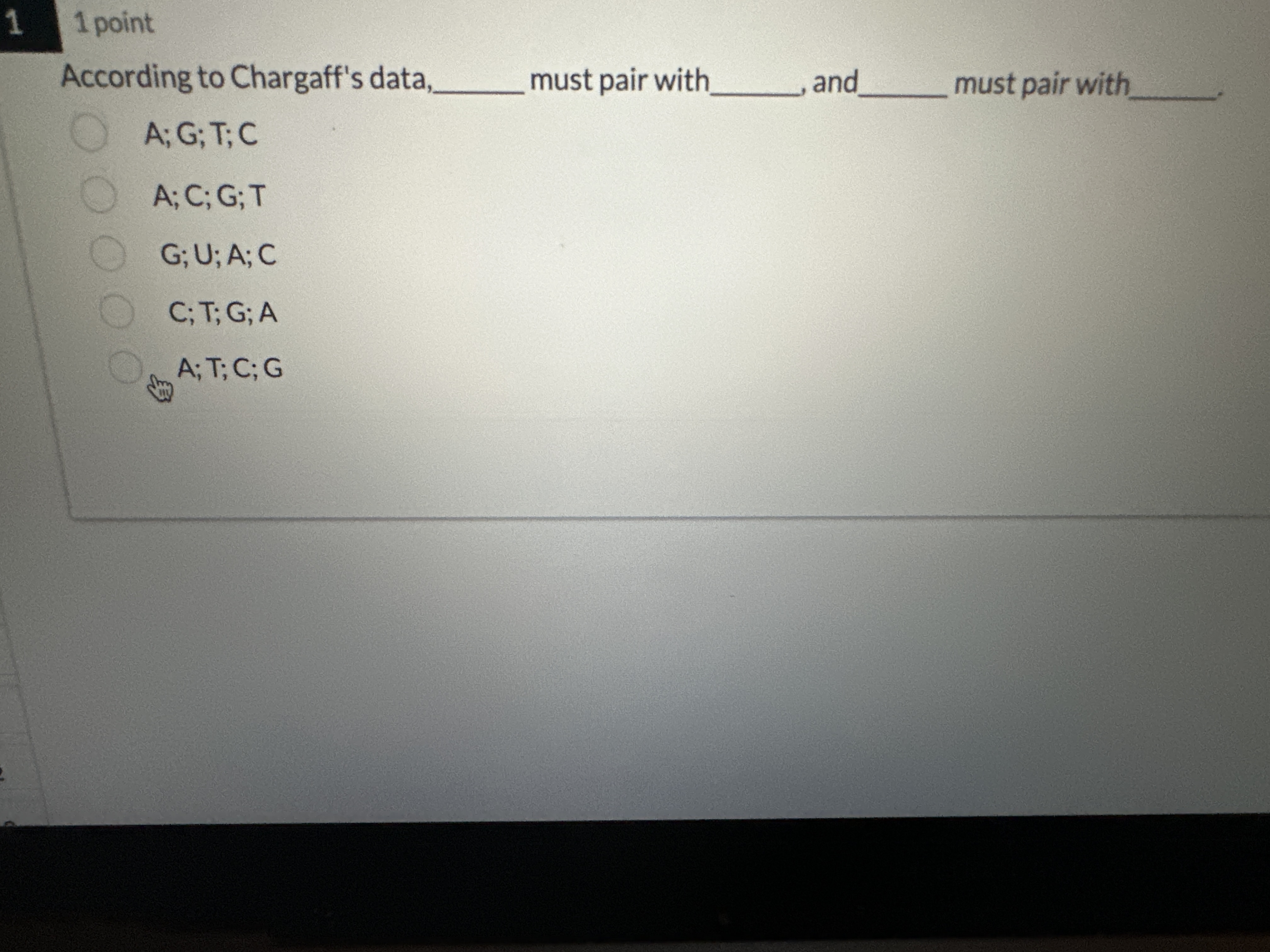 Solved 11 pointAccording to Chargaff's datamust pair | Chegg.com