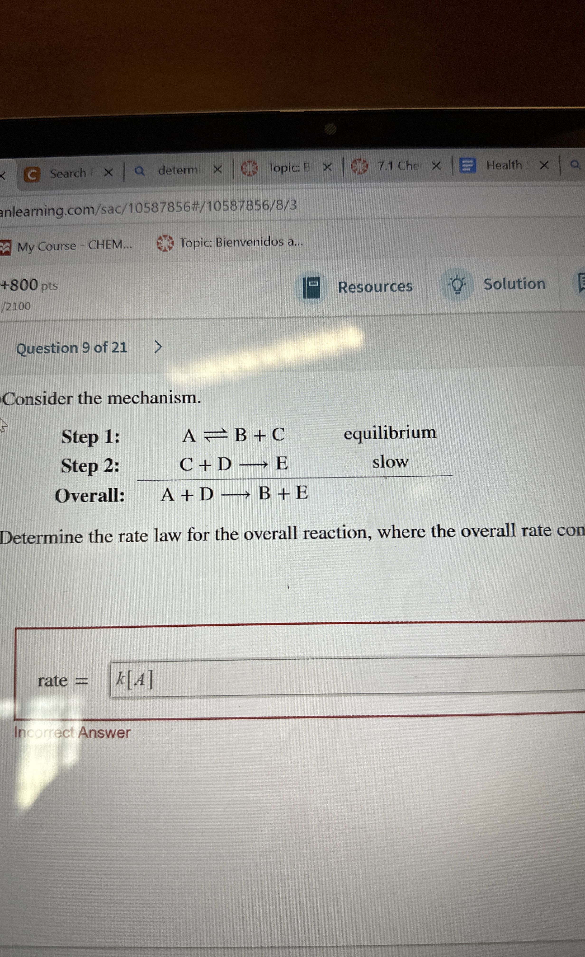 Solved Consider the mechanism.Step 1:equilibriumStep | Chegg.com