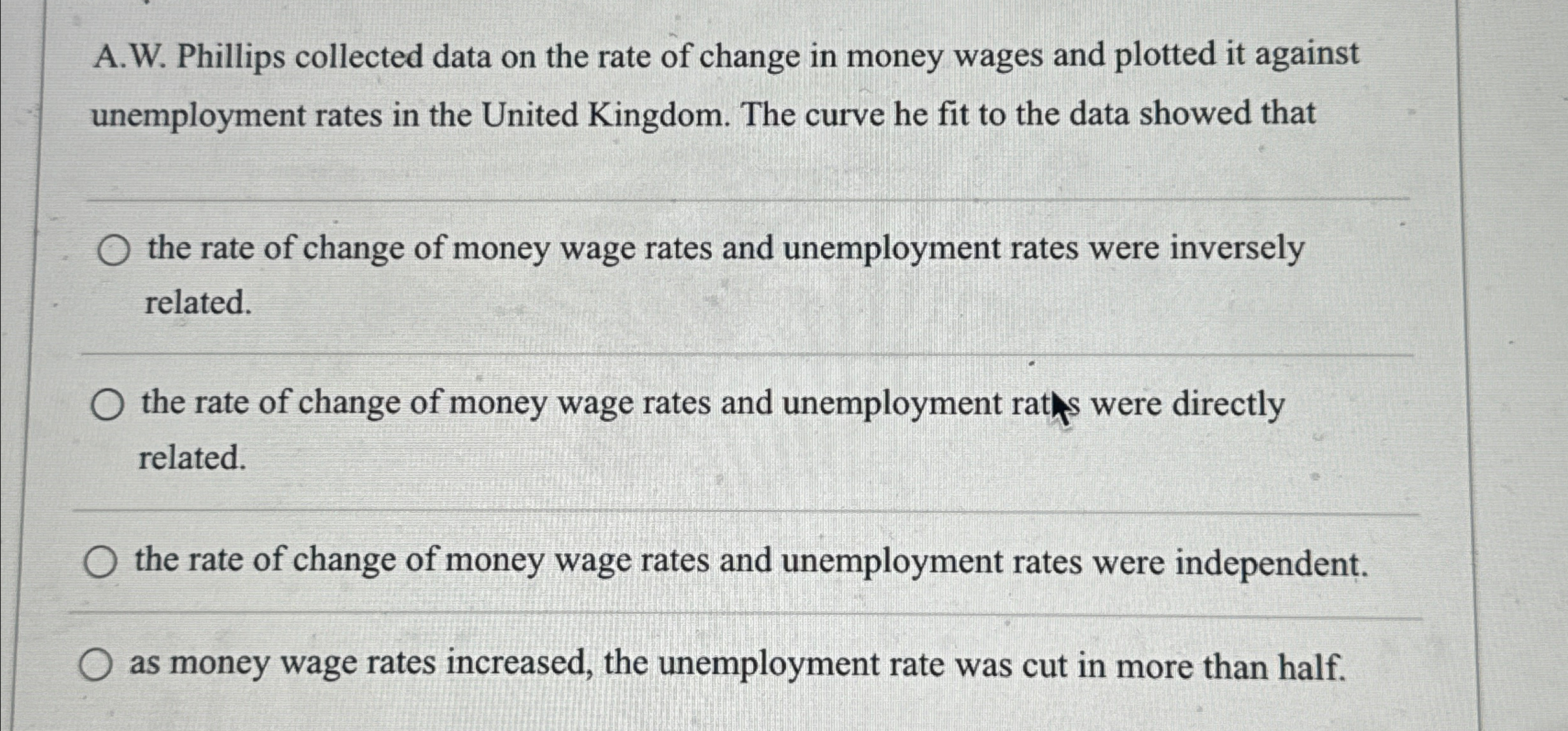 Solved A.W. Phillips collected data on the rate of change | Chegg.com
