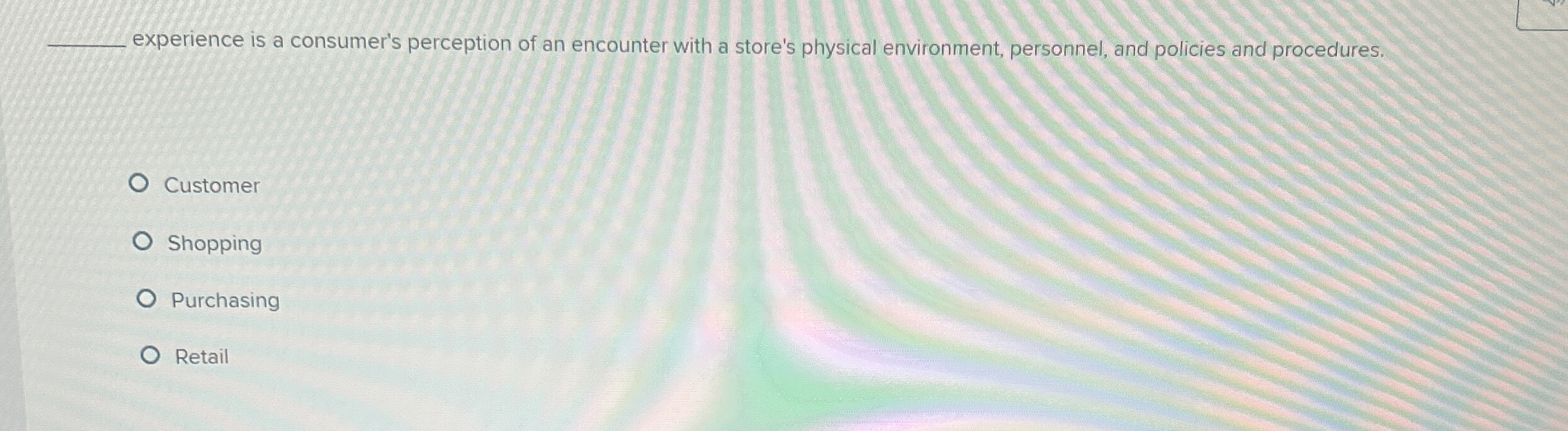 Solved q, experience is a consumer's perception of an | Chegg.com
