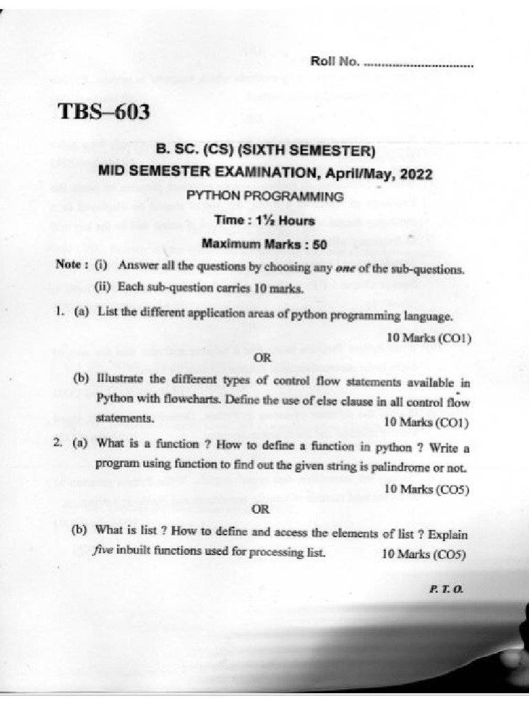 Python Previous Year Questions Paper | PDF