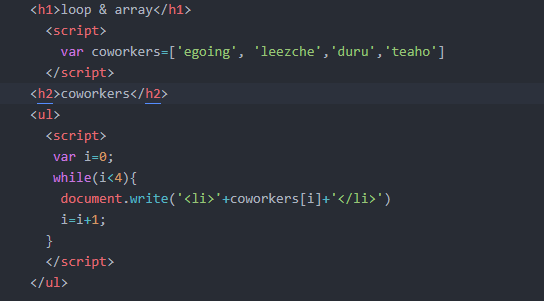 [생활코딩] javascript (배열 & 반복문) : 네이버 블로그
