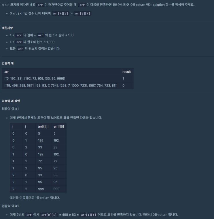 JavaScript_코딩 기초 트레이닝_특별한 이차원 배열 2_school_programmers : 네이버 블로그