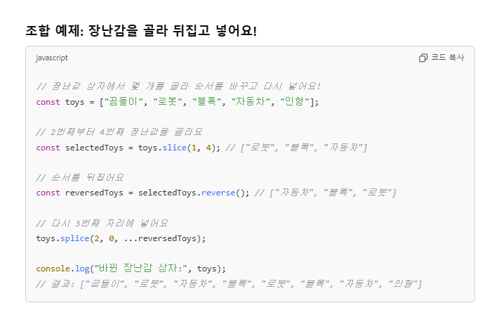 24.12.13 _ 배열 메서드 심화 _ slice() , splice(), reverse() 이해하기 :: 알잘딱 기술 BLOG
