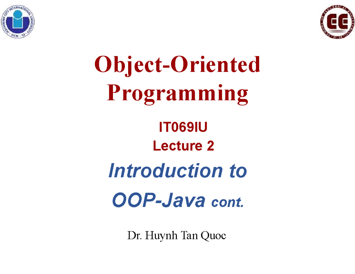 Lecture 2 Notes: QH - OOP Concepts in Java (IT069IU) - Studocu