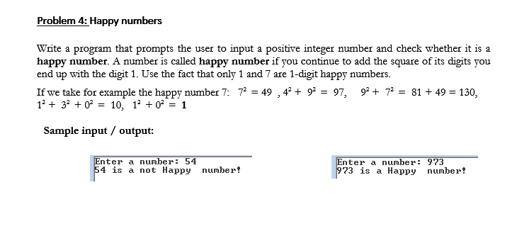 Solved (Using C++) Problem 4: Happy numbers | Chegg.com
