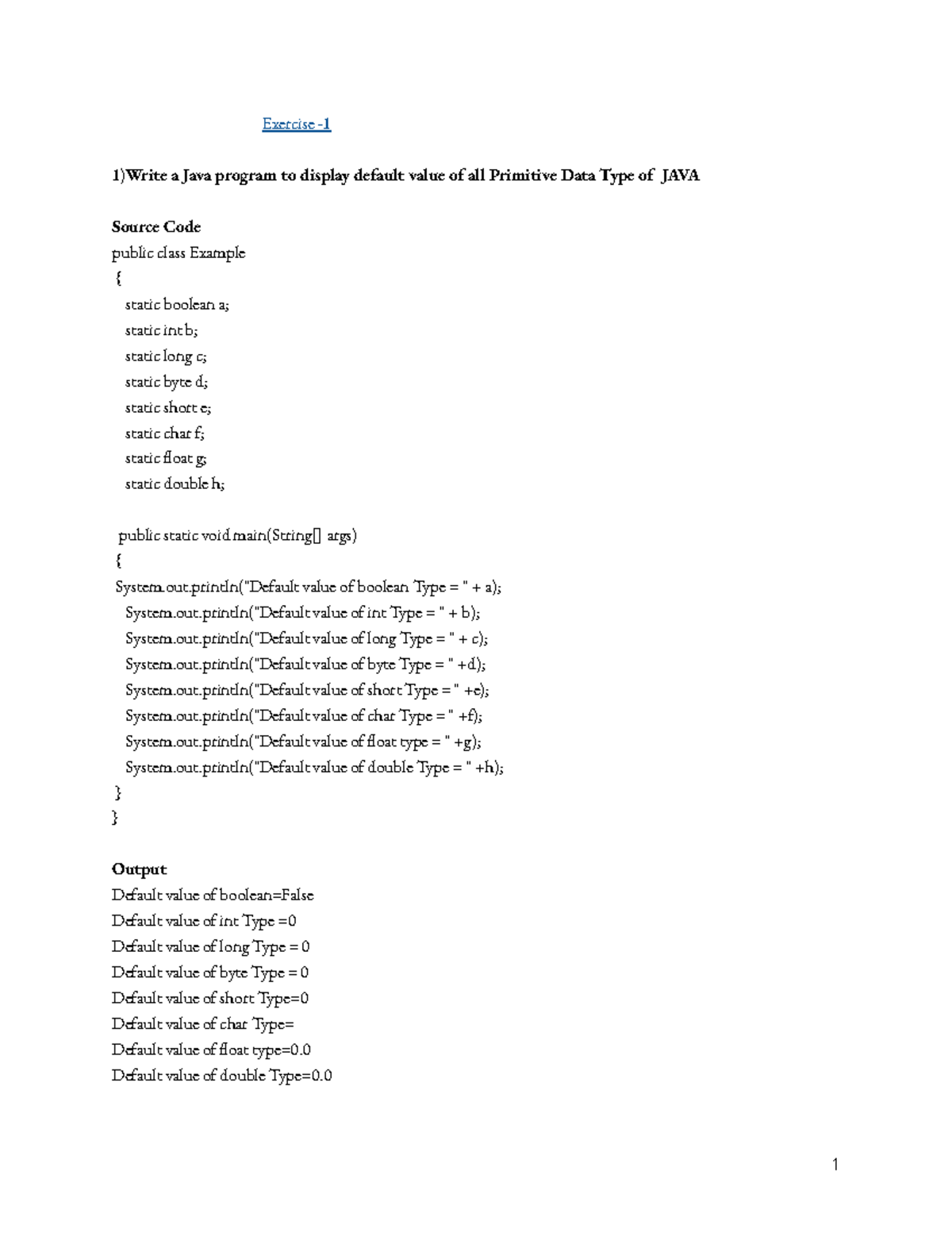 Java Jotika E-1 - I created these PDFs about Java - Exercise - 1)Write ...