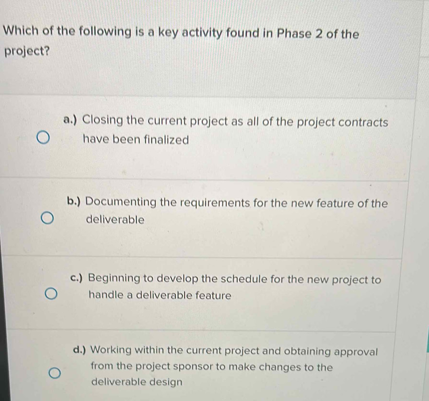Solved: Which of the following is a key activity found in Phase 2 of ...
