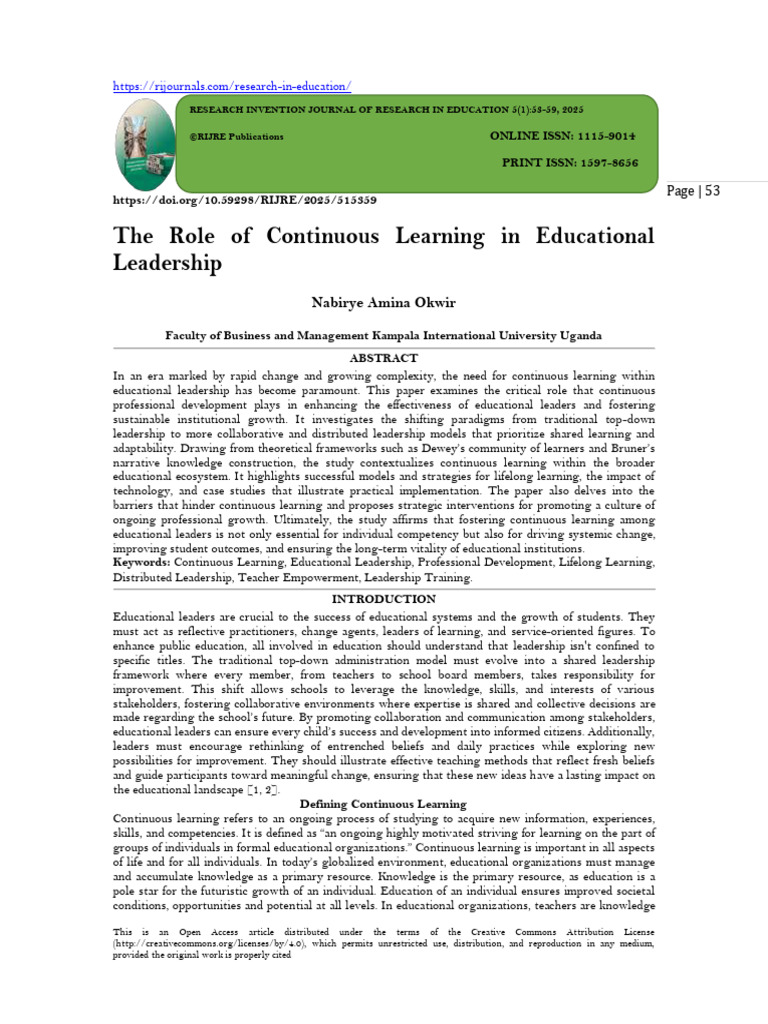 The Role of Continuous Learning in Educational Leadership (WWW - Kiu.ac ...