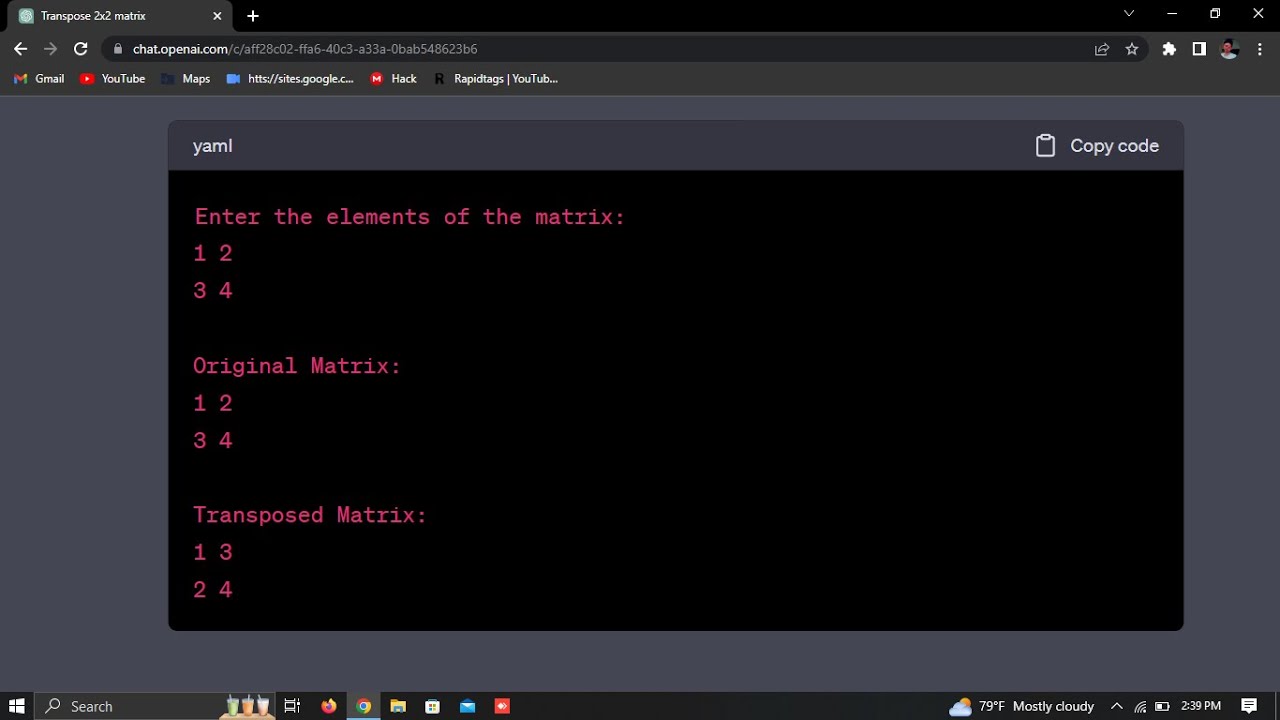 Program to find the transpose of a 2D matrix - YouTube