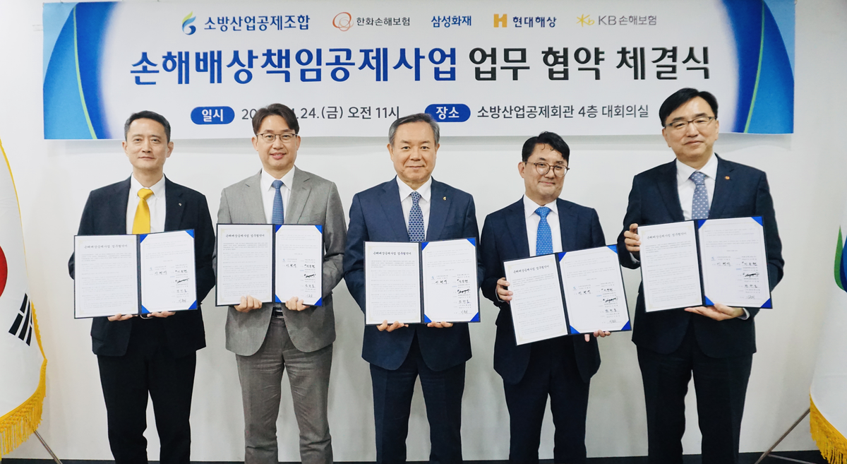 ‘국민안전 한마음’ 소방산업공제조합-4개 손보사 손해배상공제사업 업무협약